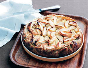 Tips: Kagen kan med stor fordel bages dagen før, den skal spises, da den kan virke ufærdig og blød i midten, lige når du tager den ud af ovnen. Når kagen køler af, og æblerne får lov til at sætte sig, vil pektinen i æblerne få kagen til at stivne, så den bliver skærefast.