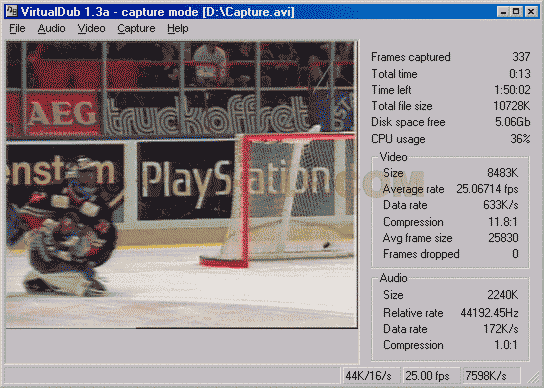 Check the Frames dropped -> if it increases to much you have too slow computer( be sure that you have selected DMA on the harddrive that you capture to), try then to configure the quality setting under MJPEG Compression setting/HUFFYUV setting.