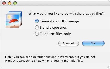 The easiest way to load your bracketed photographs is to select the files with the Finder and drag them to the Photomatix icon on your Dock.