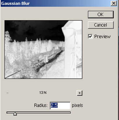 Gaussian Blur, som skal have radius på 2-10 pixel.