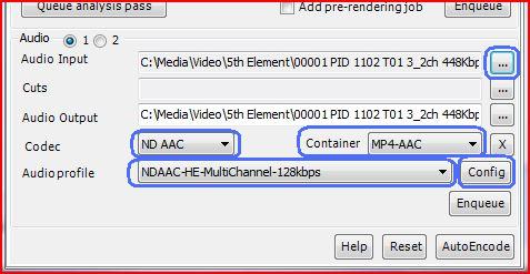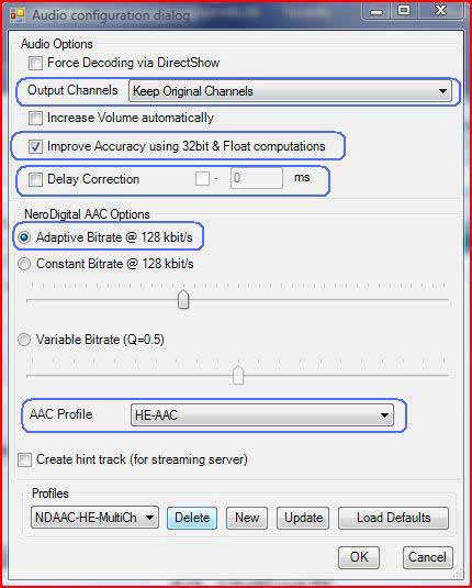 For the Audio Profile, select NDAAC-HE-MultiChannel-128kbps if you downloaded the Nero files, or NCTAAC-HE-MultiChannel-128kbps if you did not download the Nero files.