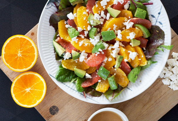 OPSKRIFT – Appelsin/grape salat med avocado og feta (2-4 pers.):