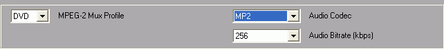 Finally, we have the MPEG-2 Mux Profile that you have to set to DVD in order to get DVD output. QuEnc can now also create SVCDs, so if you want an SVCD, set it to SVCD (keep in mind this is a DVD guide, so the resizing you have to do for SVCD is not explained here). If your AviSynth script has audio, you can also configure the audio compression used by selecting either MP2 or AC3 from the Audio Codec, and specify an Audio Bitrate for the audio encoder. You can disable multiplexing by selecting NO MUX from the MPEG-2 Mux Profile dropdown. If your source has no audio, multiplexing will also be automatically disabled.