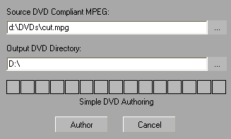 In this window, you can select a DVD compatible mpg or VOB file, select the output path, and create a simple DVD with no menus and chapters by pressing Author.