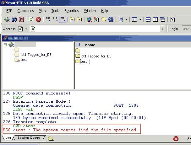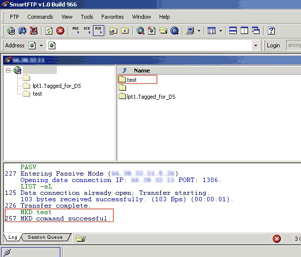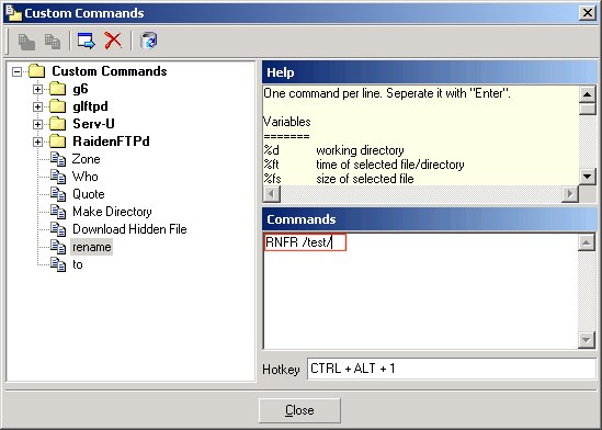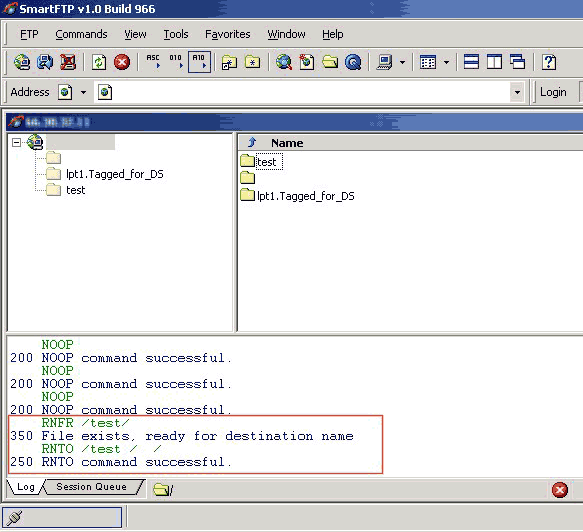 Now in the RIGHT field enter "RNFR" [after RNFR enter the path of the dir, in this case its /test/]