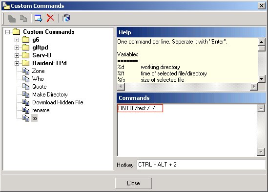 Now in the RIGHT field enter "RNTO" [after TO enter the path of the dir, with some EXTRA SPACES, in this case its /test / /]