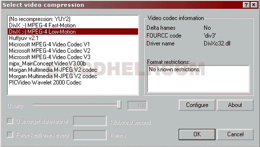 Launch your tv-application and select the channel you want to capture from. Exit your tvapplication. To capture from linein,composite or svhs change the source in Virtualdub under Video->Source. Launch VirtualDub and select File->Capture AVI and the capture mode will start. Now select Video->Format and select 352x288 for PAL and 352x240 for NTSC and YUV2. Select Video->Compression and select DivX MPEG-2 Low Motion. Hit Configure (you can of course try the other compression-codecs, for example the Huffyuv) Set the Date Rate to 910 (or you can use whatever you want and you can use a bitrate calculator to calculate how big for example a 30 min captured clip will be). Hit OK and return to VirtualDUB Select Audio->Compression. Select PCM CD Quality (and after you convert ti DivX Audio/MPEG3 because it always get out sync if realtime capturing to divx/mpeg3). Select Capture->Settings and set Frame rate: to 25 (PAL) or 29,97(NTSC). Select Wait for OK to Capture, Capture Audio and Lock video stream to audio(and the audio will get synced if you drop some frames). Now you are ready to Capture. Select File->Set Capture File and configure where you want to save your avi. Then Select Capture->Capture video. Hit Begin when you want to capture. Check the Frames dropped -> if it increases to much you have too slow computer( be sure that you have selected DMA on the harddrive that you capture to), try then to configure the data rate setting under Diivx. Now Close the Capture. Open the Captured DivX. Select under Video->Direct Stream Copy. Select under Audio->Full Processing. Select under Audio->Compression and select DivX or MPEG3 128kbits 44100hz. Select under File->Sava AVI and save as new Divx. Url to this pages: http://nade.dk/web/nade/site.nsf/FramesetHP?readform&wmain=files/capturedivx