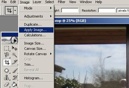 Her finder vi det menu punkt, som bringer os til det sted i programmet, hvor 2 billeder, som er lige store, kan lægges sammen. Det hedder Apply Image..