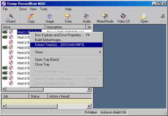 In RecordNow Max, you can click on the drive with the backup in it, and left click, and go to "Extract tracts"