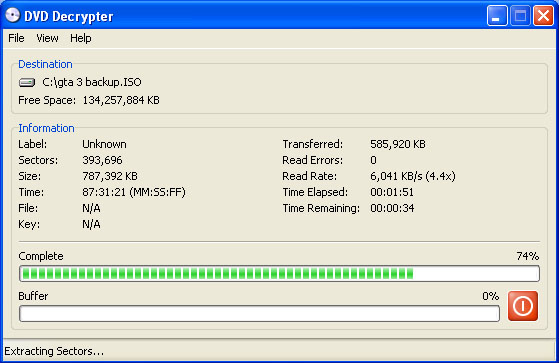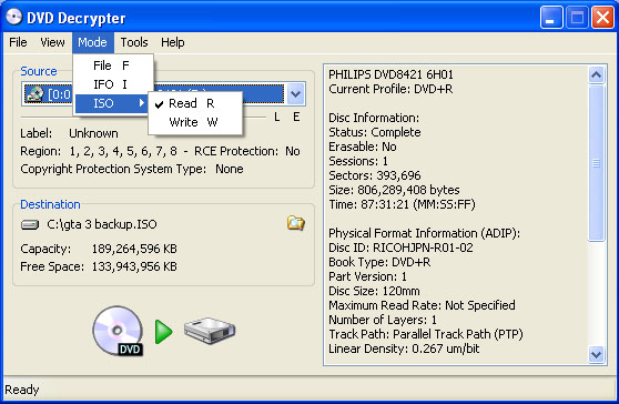 Then, press the "DVD to hdd" button, and it will extract the iso from the dvd in a matter of minutes.