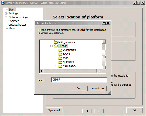 (In our example, that source is located at C:\OEMXP. It contains the i386 folder.)