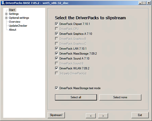 7) Next, in the below screen, you can select which driverpacks you want to integrate.