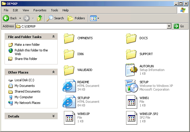 In this example, you can see that the copy of the CD is located at C:\OEMXP.