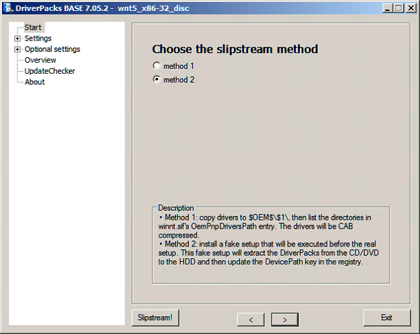 A comment; When you use Method 1, and you run DPsBASE the first time, it can take up to 40 minutes. It takes longer, uses more space, and the Path it writes in WINNT.SIF should not exceed 4096 characters.. But you can learn to love M 1 when you are in a real bind, or just need a Disc with searchable drivers.
