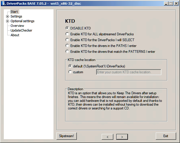 KTD is beneficial if you plan on swapping hardware (a hardware test bed) since this leaves all the driverpacks uncompressed on your Windows destination [C:\Windows\Drivers\] and Windows gets told where they are.