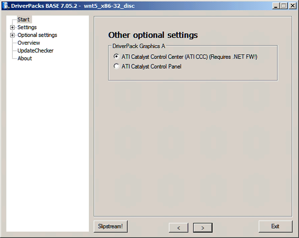 12) Now you can select between ATI Catalyst Control Center or ATI Control Panel integration.