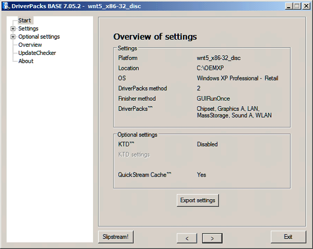 The settings.ini file will be automatically saved for a next run. For instance, after updates were downloaded you can run DPsBASE on the same source, and the settings you last used can be used. It will detect the updated DriverPacks releases just fine.