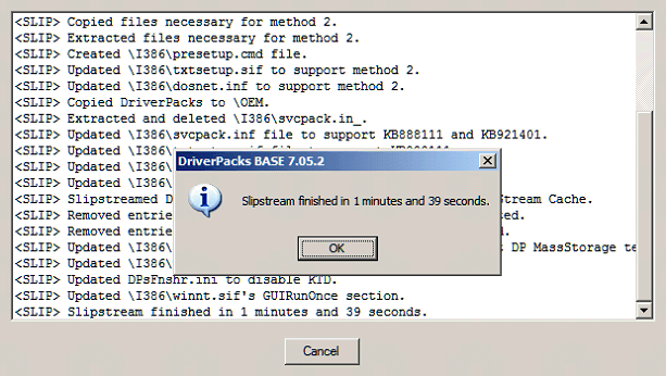 Depending on the speed of your PC and the number of driverpacks you are integrating, the slipstreaming process may take anywhere from 8-seconds to 5-minutes.