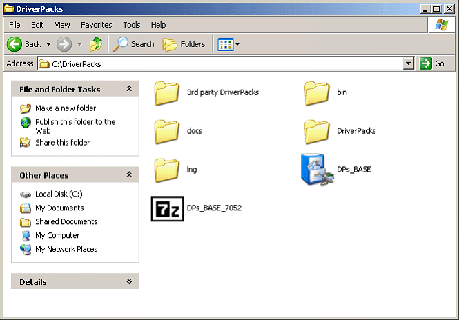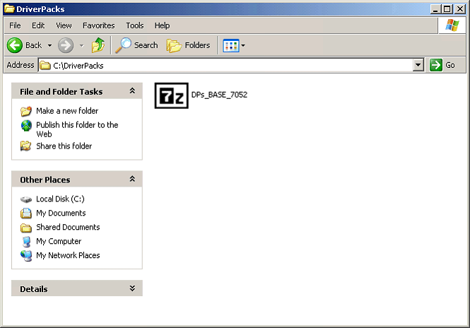 2) Next, put your Driverpacks Base self-extracting archive someplace convenient (i.e. C:\Driverpacks\).