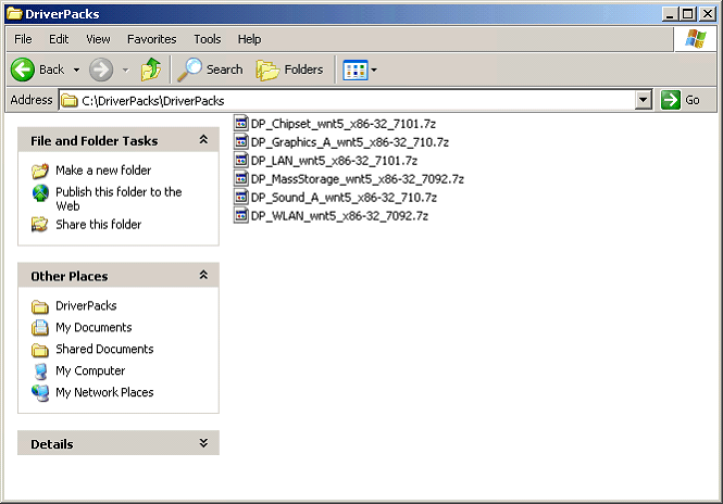 4) Now, copy or download any driverpacks you need for your hardware to the new directory it has created.