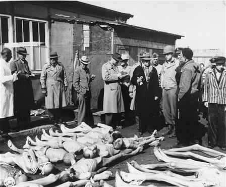 In the photo above, the war is over, and editors and publishers have been invited to the Nazi camps to see the dead bodies. These gullible editors went back home with stories that